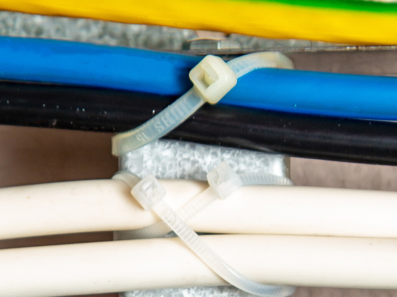 - ตรวจสอบอายุของเคเบิ้ลไทร์ ถ้าเก็บไว้นานเกินไปโดยไม่ใช้ อาจกรอบหรือเสื่อมเอง