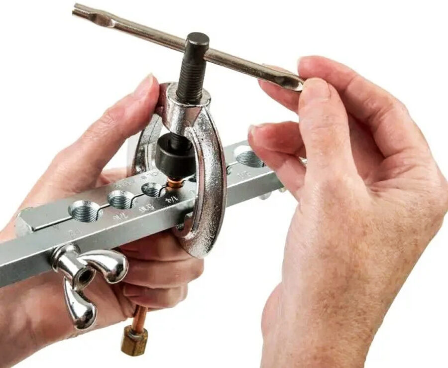 หมุนหัวบานแฟร์ให้สัมผัสกับปลายท่อแล้วค่อย ๆ บานเข้าไปเรื่อย ๆ อย่าหมุนเร็วหรือกดแรงเกินไป เพราะจะทำให้ท่อบานผิดรูป