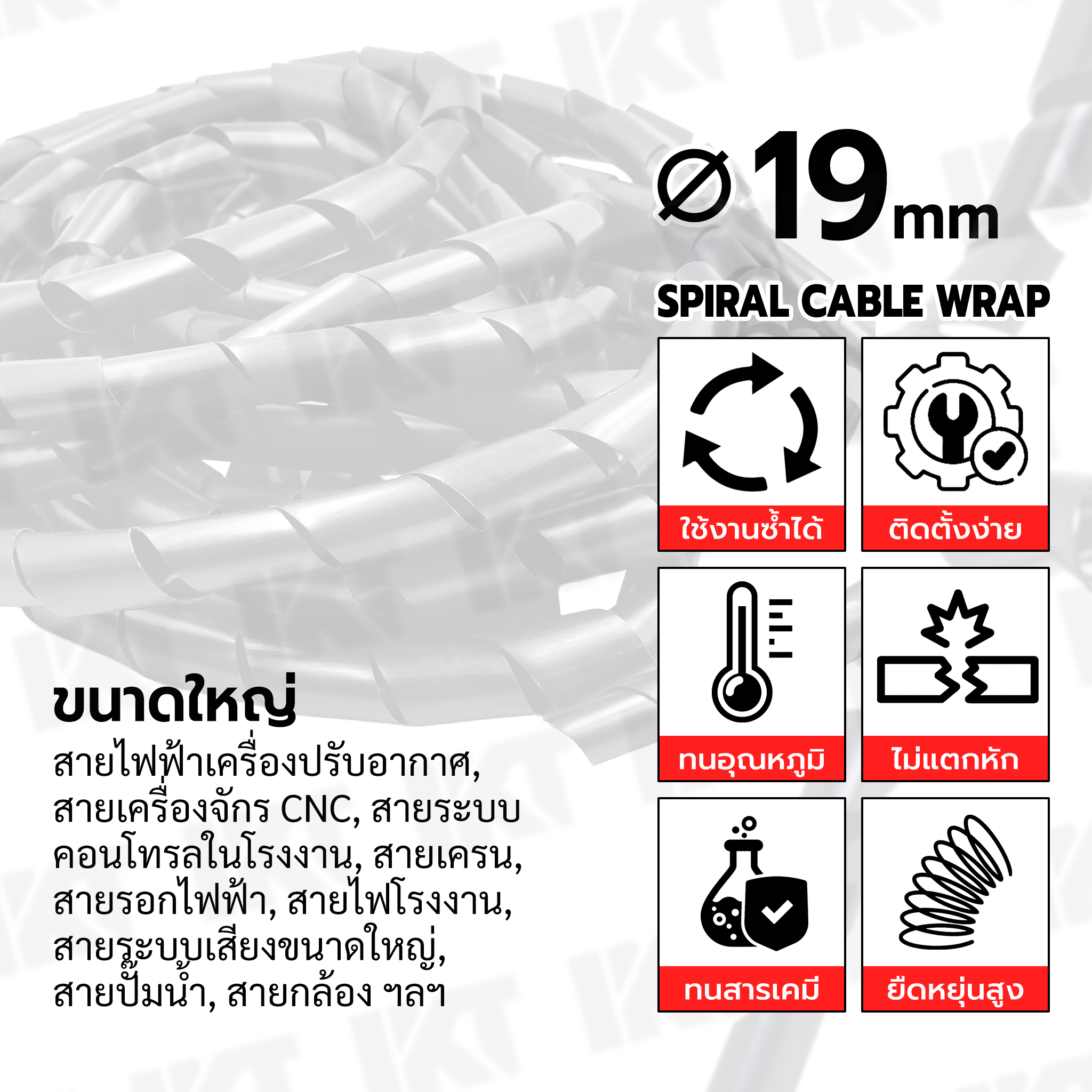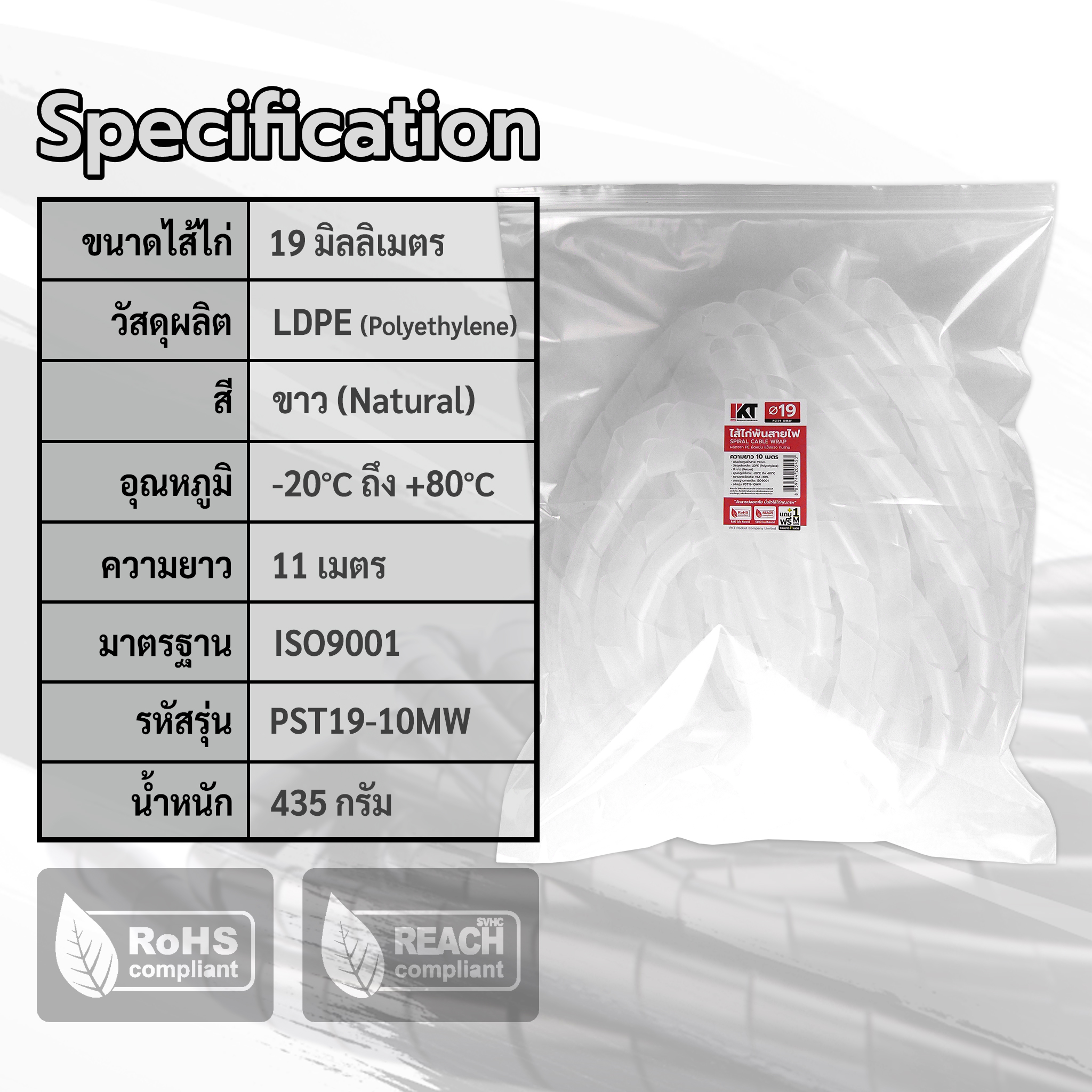 ไส้ไก่พันสายไฟ PKT ขนาด 19 มิลลิเมตร (เบอร์ 19) สีขาว ความยาว 10 เมตร แถมฟรี! อีก 1 เมตร ใช้สำหรับจัดเก็บ รวบรวมสายไฟ สายสัญญาณ หรือสายคอนโทรลหลายเส้นให้เป็นระเบียบในหนึ่งเดียว ผลิตจากพลาสติก LDPE คุณภาพสูง ใช้งานง่าย มีความยืดหยุ่น น้ำหนักเบา และทนต่อการเสียดสี ไส้ไก่เก็บสายไฟ แบบอ่อน ขนาด 19 mm. สีขาว เหมาะสำหรับ สายไฟฟ้าเครื่องปรับอากาศ, สายเครื่องจักร CNC, สายระบบคอนโทรลในโรงงาน, สายเครน/รอกไฟฟ้า, สายไฟโรงงานเบอร์ใหญ่, สายระบบเสียงขนาดใหญ่, สายเครื่องมือแพทย์, สายพลังงานแสงอาทิตย์, สายปั๊มน้ำ, สายกล้อง Broadcast