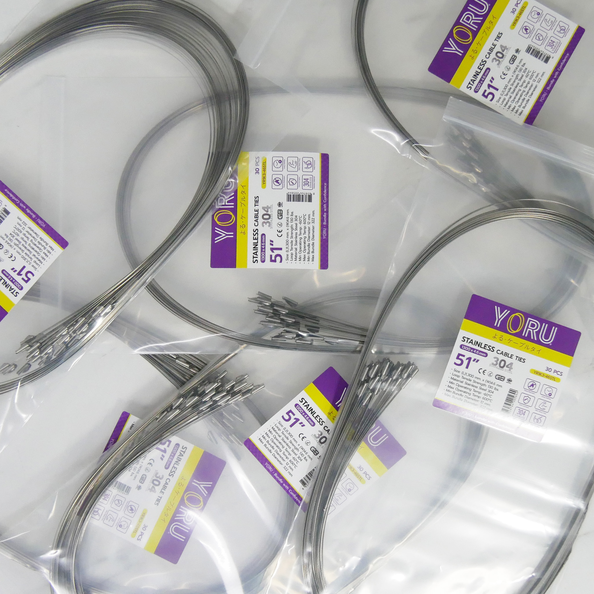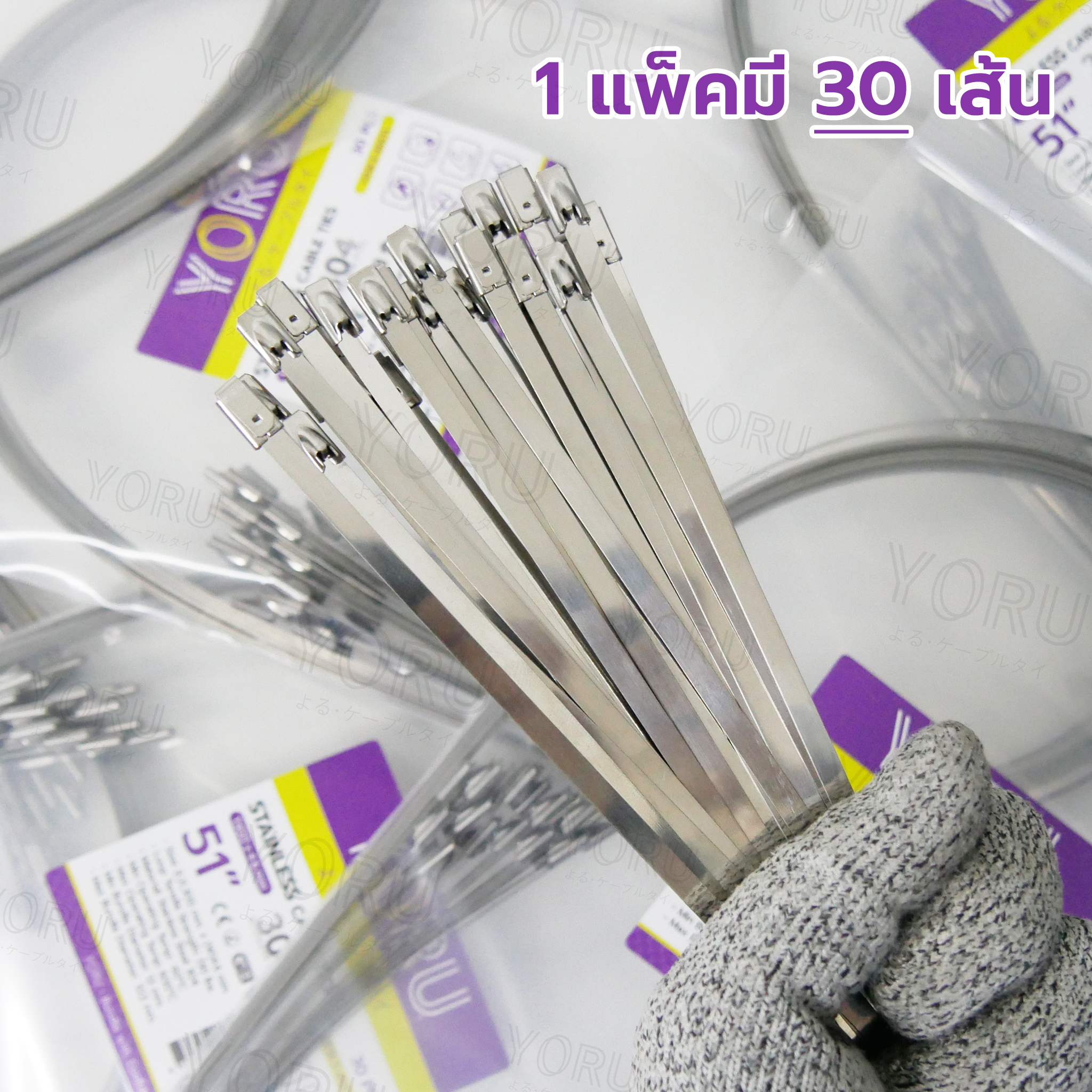 เคเบิ้ลไทร์ YORU เคเบิลไทร์สแตนเลส สายยาว 51″ นิ้ว (ซองละ 30 เส้น) สายรัดเคเบิ้ลไทร์สแตนเลส ความกว้างสาย 4.6 mm. เคเบิ้ลไทร์ มาตรฐาน จำหน่ายเคเบิ้ลไทเคเบิ้ลไทร์ยี่ห้อโยรุ เคเบิ้ลไท รัดแน่น รัดได้นาน เคเบิ้ลไทร์ยาว สายรัดแบบยาวพิเศษ เกรดสูงใช้กับงานโครงสร้าง ไม่กรอบ ไม่แตกหัก ผลิตจาก สแตนเลสเกรด 304 แท้อายุการใช้งานยาวนาน เคเบิ้ลไทร์ เหนียว ทนทาน มีอายุการใช้งานยาวนาน บรรจุในซองซิปล็อคคุณภาพดี หยิบใช้งานสะดวก จัดเก็บง่าย