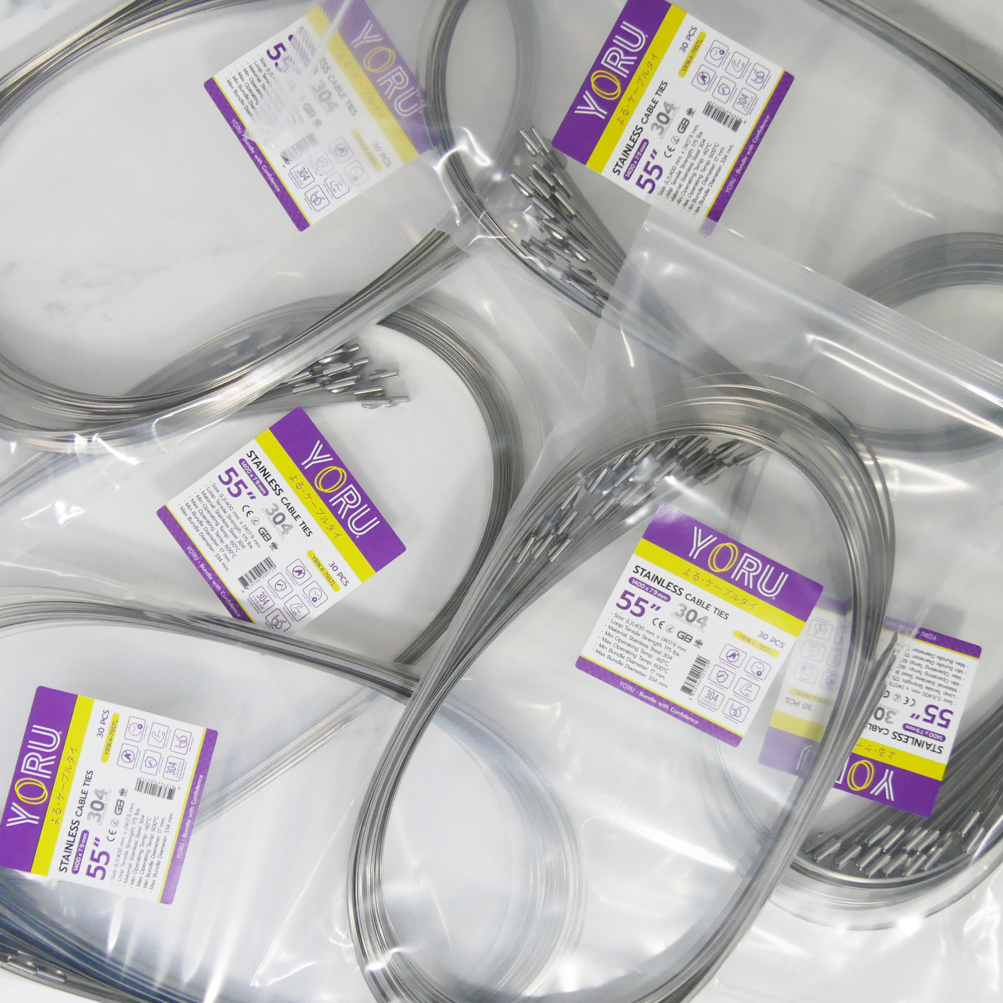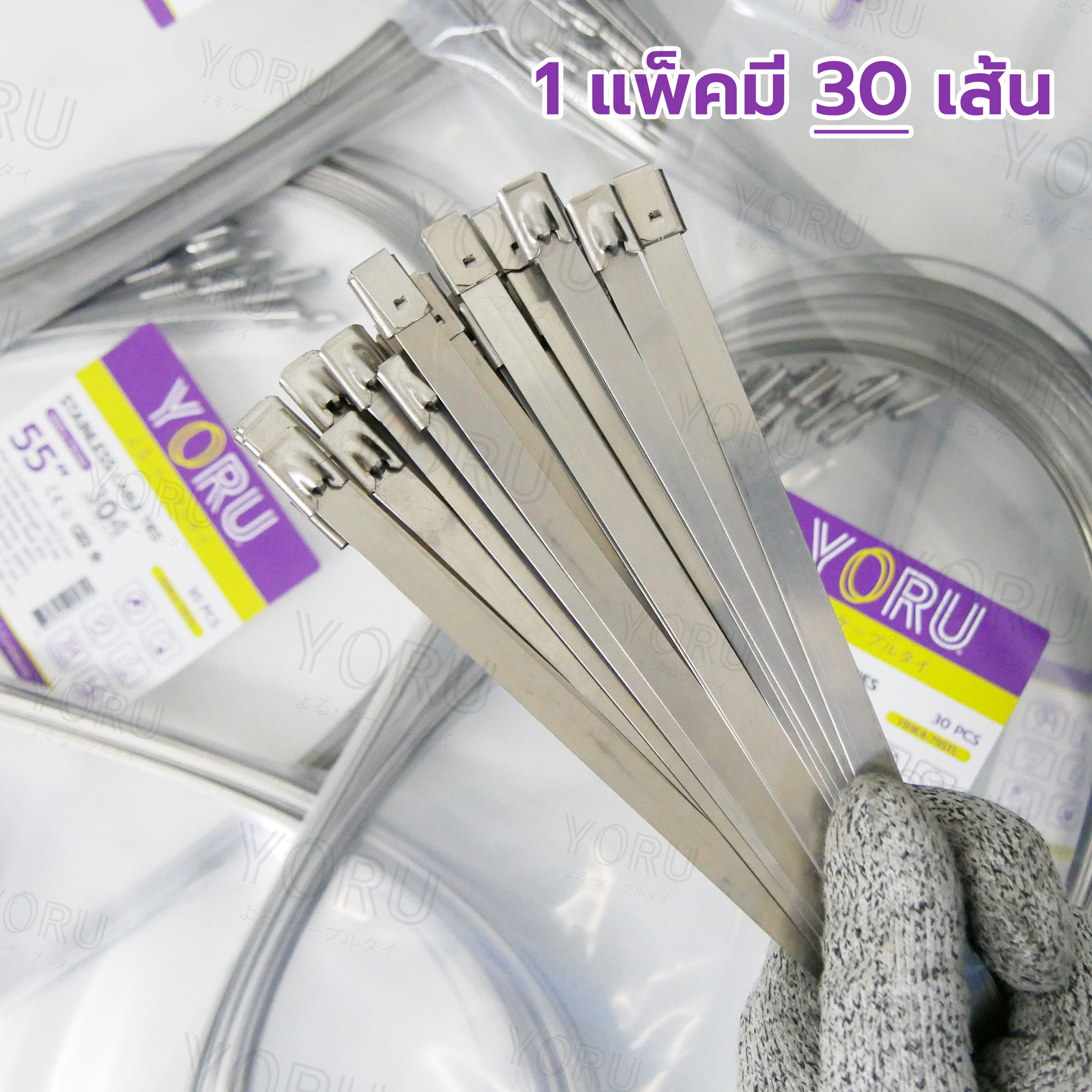 เคเบิ้ลไทร์ YORU เคเบิลไทร์สแตนเลส สายยาว 55″ นิ้ว (ซองละ 30 เส้น) สายรัดเคเบิ้ลไทร์สแตนเลส ความกว้างสาย 7.9 mm. เคเบิ้ลไทร์ มาตรฐาน จำหน่ายเคเบิ้ลไทเคเบิ้ลไทร์ยี่ห้อโยรุ เคเบิ้ลไท รัดแน่น รัดได้นาน เคเบิ้ลไทร์ยาว สายรัดแบบยาวพิเศษ เกรดสูงใช้กับงานโครงสร้างได้ ไม่กรอบ ไม่แตกหัก ผลิตจาก สแตนเลสเกรด 304 แท้อายุการใช้งานยาวนาน เคเบิ้ลไทร์ เหนียว ทนทาน มีอายุการใช้งานยาวนาน บรรจุในซองซิปล็อคคุณภาพดี หยิบใช้งานสะดวก จัดเก็บง่าย