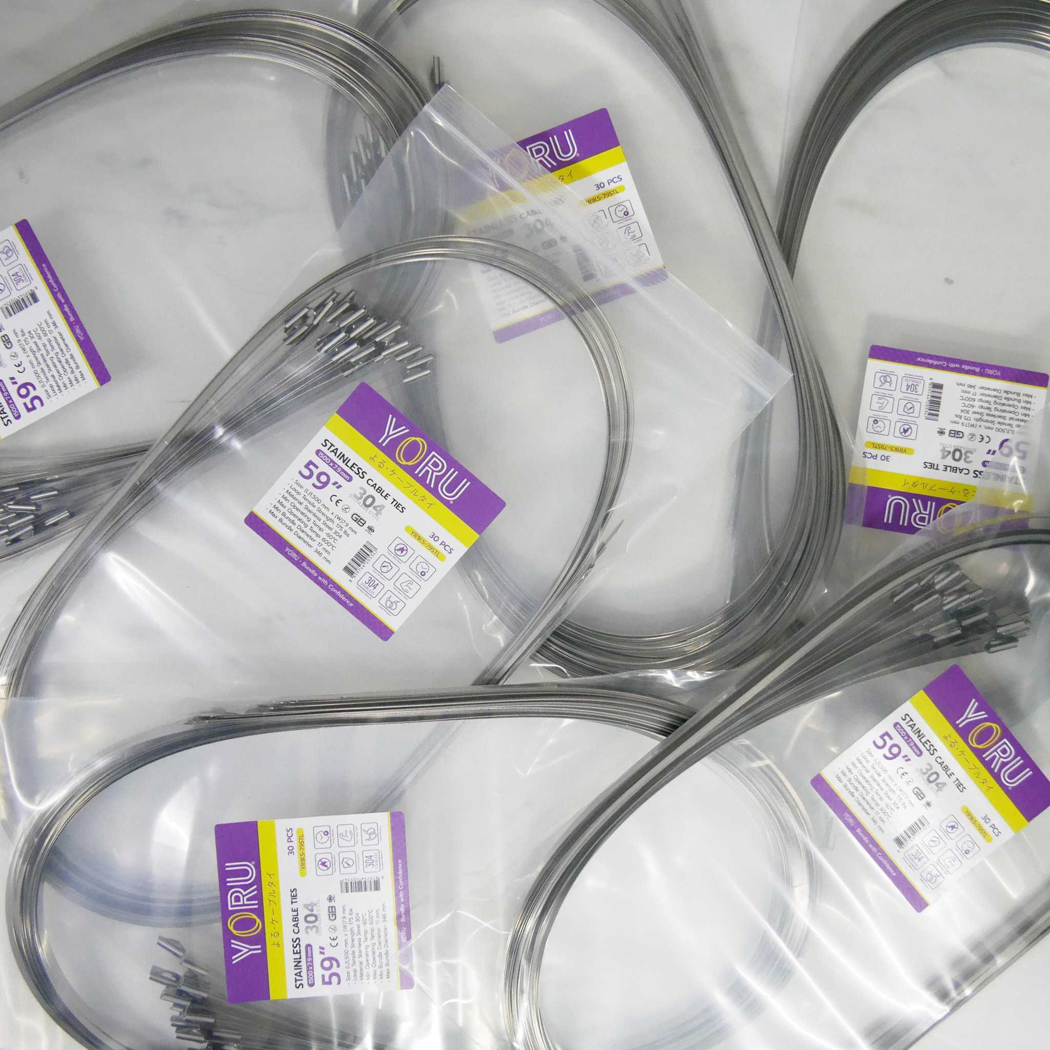 เคเบิ้ลไทร์ YORU เคเบิลไทร์สแตนเลส สายยาว 59″ นิ้ว (ซองละ 30 เส้น) สายรัดเคเบิ้ลไทร์สแตนเลส ความกว้างสาย 7.9 mm. เคเบิ้ลไทร์ มาตรฐาน จำหน่ายเคเบิ้ลไทเคเบิ้ลไทร์ยี่ห้อโยรุ เคเบิ้ลไท รัดแน่น รัดได้นาน เคเบิ้ลไทร์ยาว สายรัดแบบยาวพิเศษ เกรดส่งออกยุโรป ไม่กรอบ ไม่แตกหัก ผลิตจาก สแตนเลสเกรด 304 แท้อายุการใช้งานยาวนาน เคเบิ้ลไทร์ เหนียว ทนทาน มีอายุการใช้งานยาวนาน บรรจุในซองซิปล็อคคุณภาพดี หยิบใช้งานสะดวก จัดเก็บง่าย