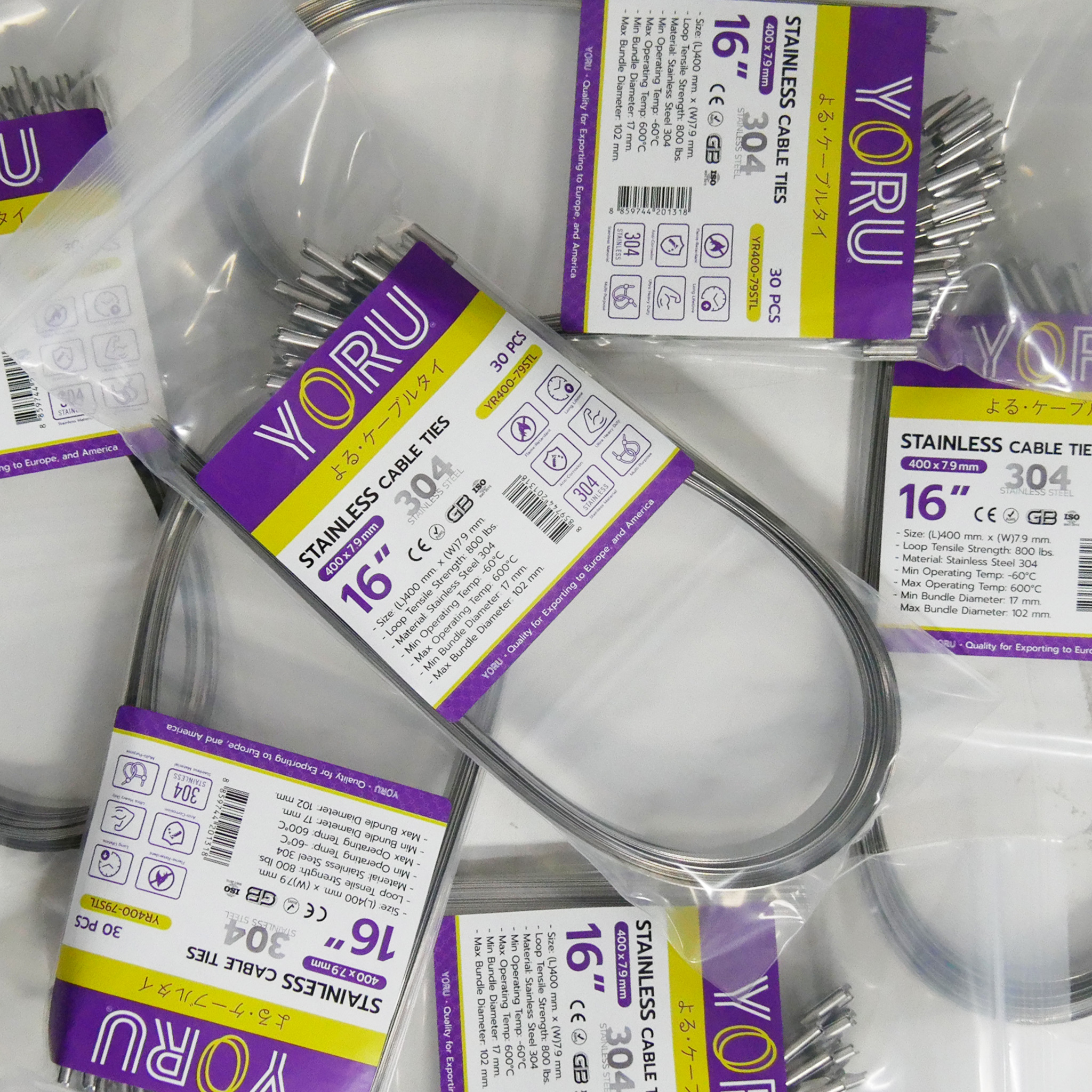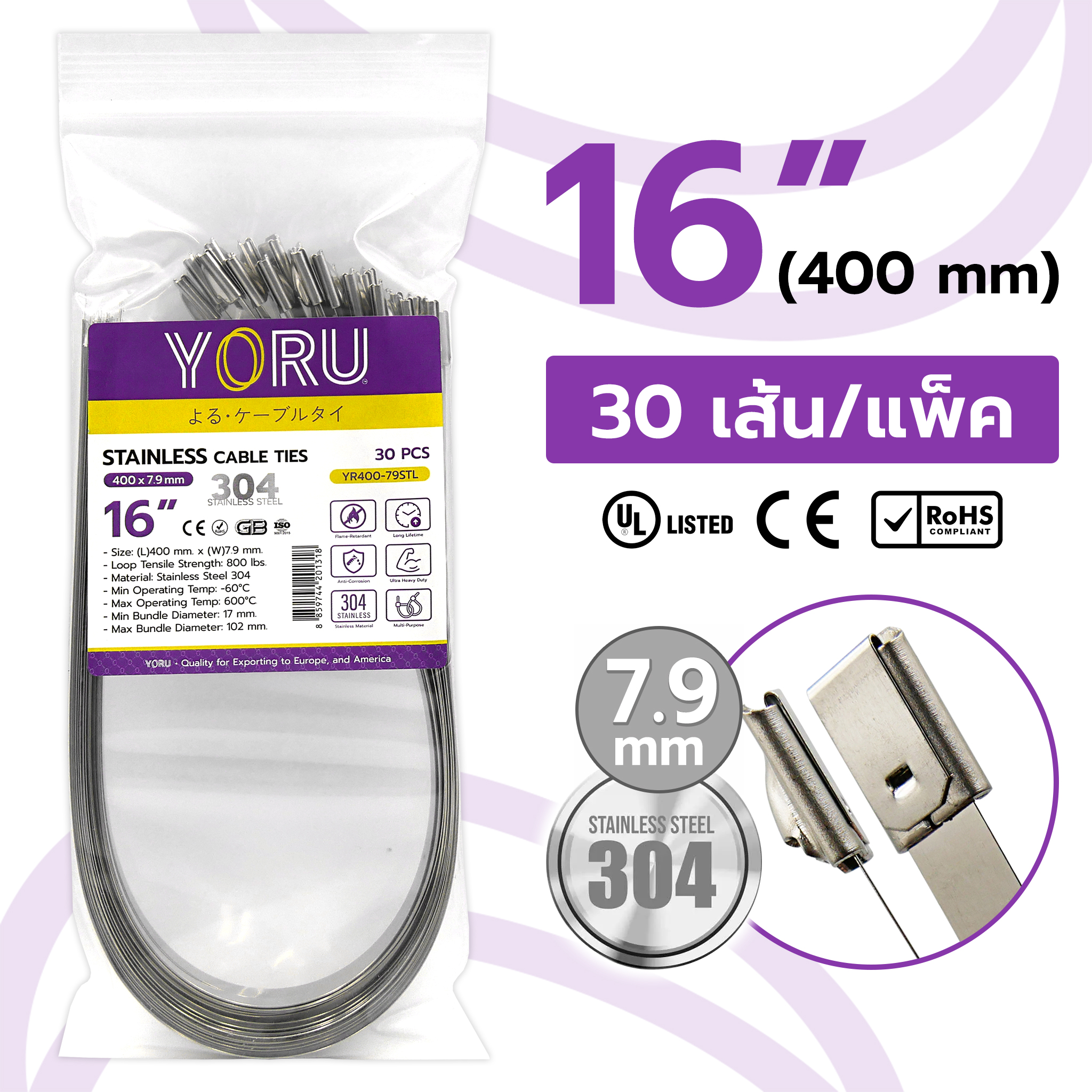 เคเบิ้ลไทร์ YORU สายเคเบิ้ลไทรสแตนเลส สายยาว 16″ นิ้ว (แพ็ค 30 ชิ้น) เคเบิ้ลไทร์อย่างดีสแตนเลส 304 ขนาดกว้าง 7.9 mm. สายรัด เคเบิ้ลไทร์ จำหน่ายสายรัดเคเบิ้ลไทร์ยี่ห้อโยรุ สายรัด ไนล่อนแท้ คุณภาพดี cable ties เคเบิ้ลไทร์เก็บสายไฟ ปลอดสารอันตราย เหนียว ทนทาน ตัวเส้นอย่างหนา เส้นเหนียว รับประกันคุณภาพ เคเบิ้ลไทร์ มาตรฐานส่งออก ทนทานสูงกว่าแบบทั่วไป เก็บง่ายเมื่อไม่ใช้งาน ด้วยตัวแพ็คเกจแบบซองซิป