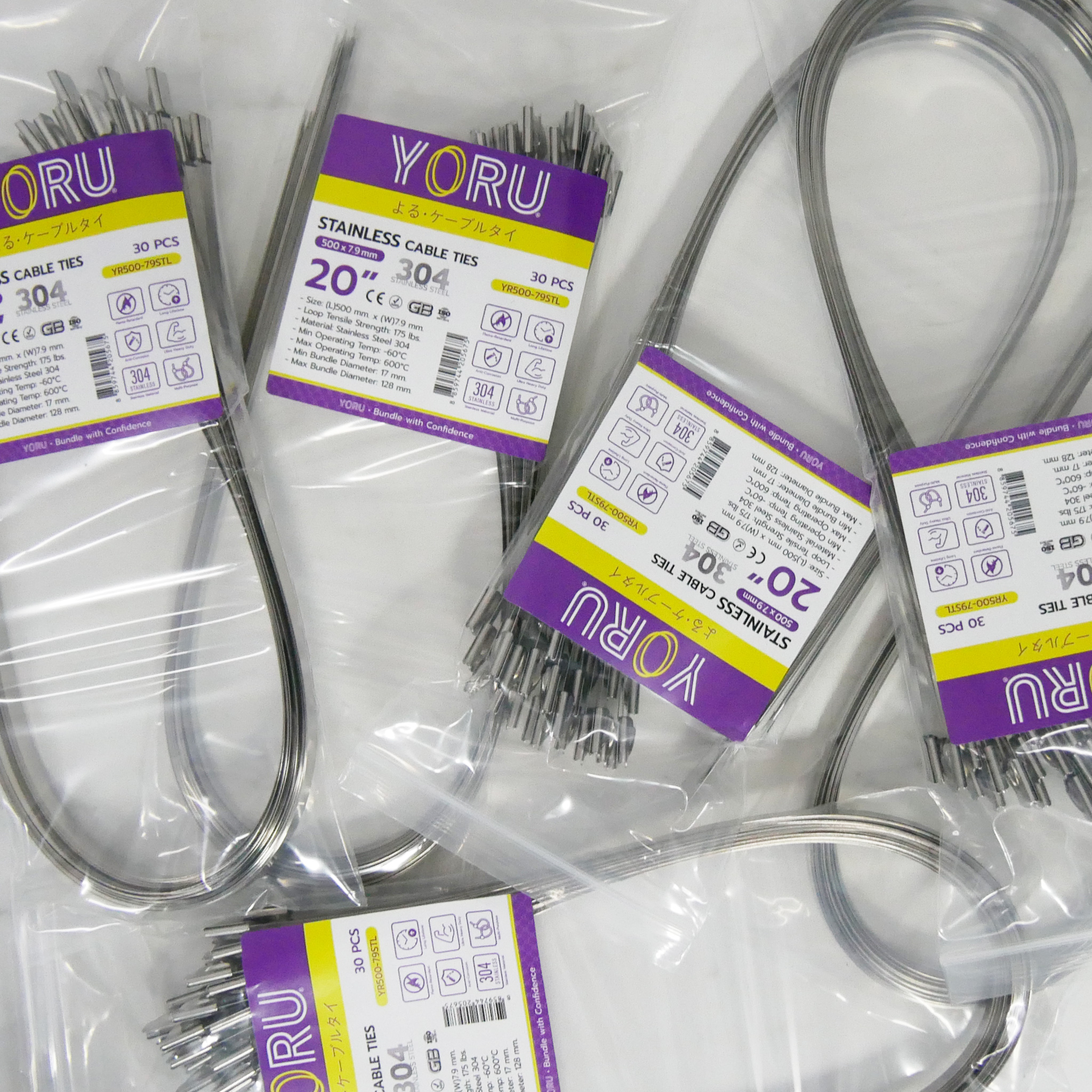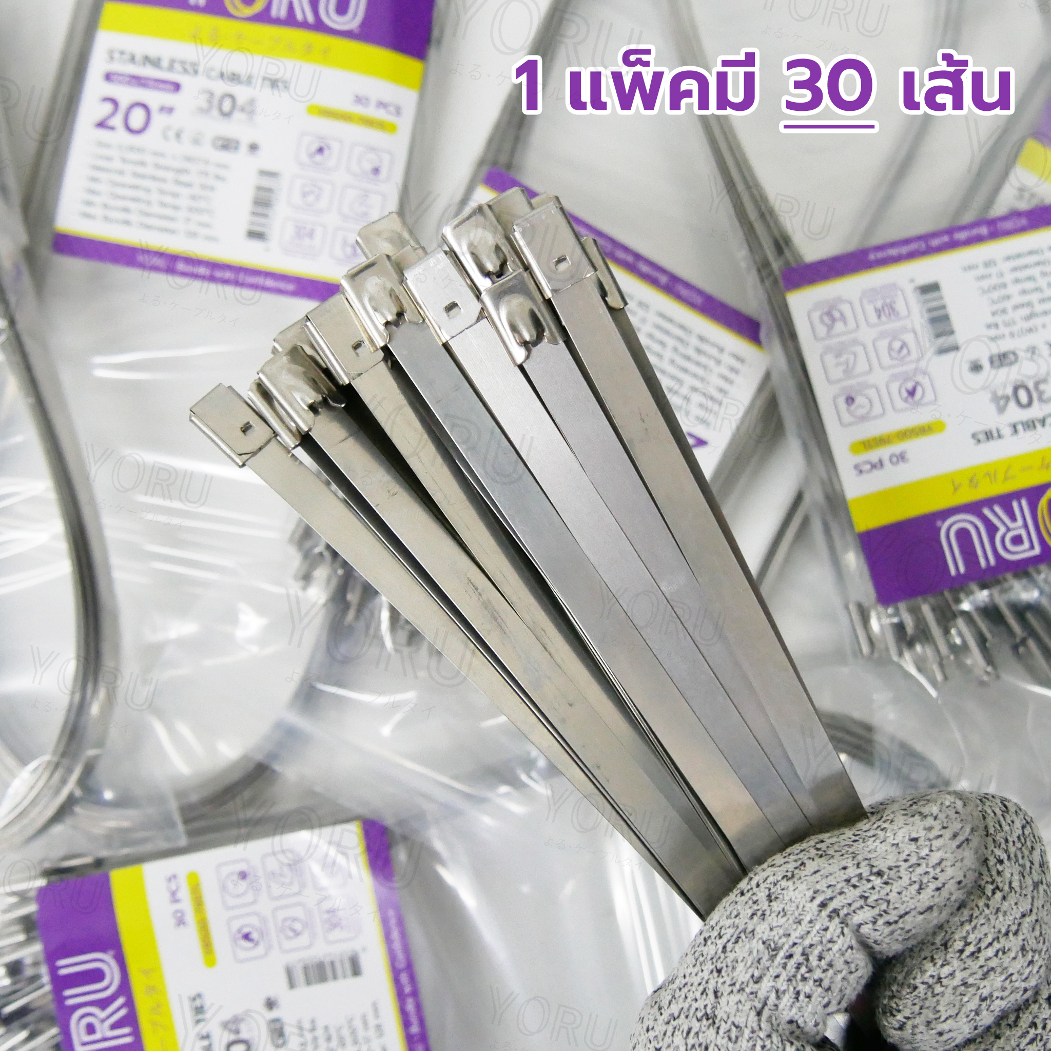 เคเบิ้ลไทร์ YORU เคเบิลไทร์สแตนเลส สายยาว 20″ นิ้ว (ซองละ 30 เส้น) สายรัดเคเบิ้ลไทร์สแตนเลส ความกว้างสาย 7.9 mm. เคเบิ้ลไทร์ มาตรฐาน จำหน่ายเคเบิ้ลไทเคเบิ้ลไทร์ยี่ห้อโยรุ เคเบิ้ลไท รัดแน่น รัดได้นาน เคเบิ้ลไทร์ยาว สายรัดแบบยาวพิเศษ เกรดสูงใช้กับงานโครงสร้างได้ ไม่กรอบ ไม่แตกหัก ผลิตจาก สแตนเลสเกรด 304 แท้อายุการใช้งานยาวนาน เคเบิ้ลไทร์ เหนียว ทนทาน มีอายุการใช้งานยาวนาน บรรจุในซองซิปล็อคคุณภาพดี หยิบใช้งานสะดวก จัดเก็บง่าย