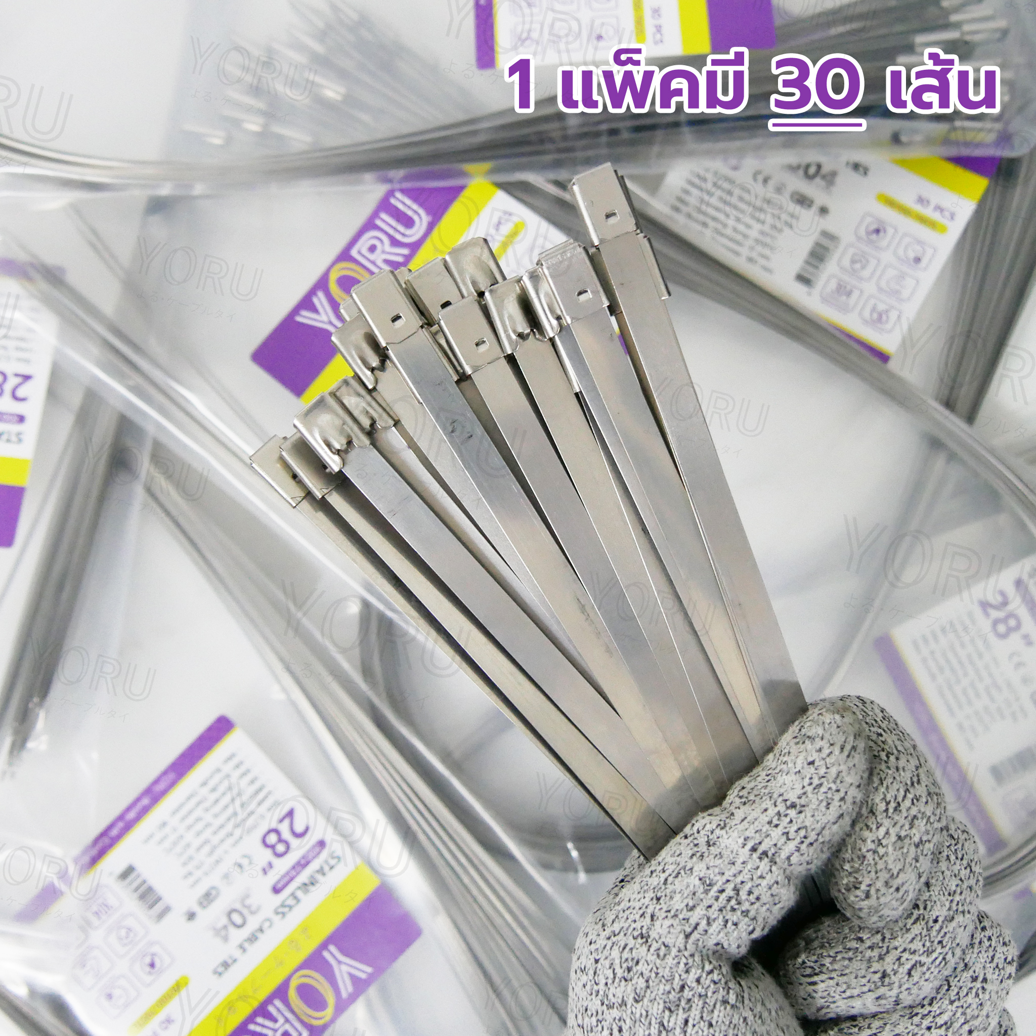 เคเบิ้ลไทร์ YORU เคเบิลไทร์สแตนเลส สายยาว 28″ นิ้ว (ซองละ 30 เส้น) สายรัดเคเบิ้ลไทร์สแตนเลส ความกว้างสาย 7.9 mm. เคเบิ้ลไทร์ มาตรฐาน จำหน่ายเคเบิ้ลไทเคเบิ้ลไทร์ยี่ห้อโยรุ เคเบิ้ลไท รัดแน่น รัดได้นาน เคเบิ้ลไทร์ยาว สายรัดแบบยาวพิเศษ เกรดสูงใช้กับงานโครงสร้างได้ ไม่กรอบ ไม่แตกหัก ผลิตจาก สแตนเลสเกรด 304 แท้อายุการใช้งานยาวนาน เคเบิ้ลไทร์ เหนียว ทนทาน มีอายุการใช้งานยาวนาน บรรจุในซองซิปล็อคคุณภาพดี หยิบใช้งานสะดวก จัดเก็บง่าย